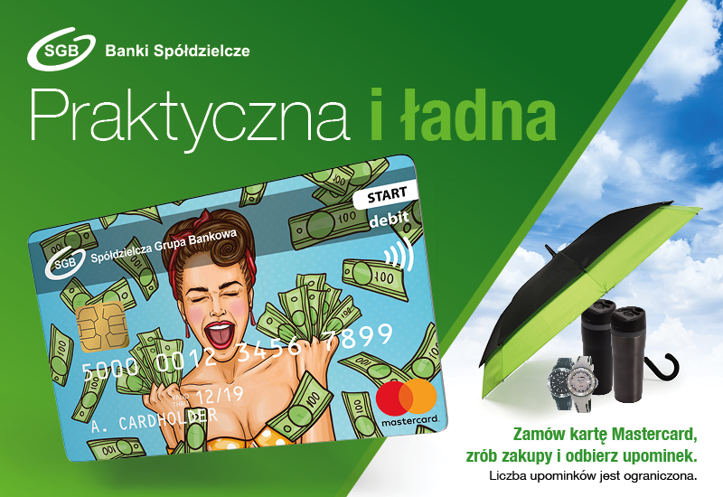 Informujemy, że od dnia 11 marca 2019 r. do dnia 15 maja 2019 r. rusza nowa promocyjna sprzedaż kart debetowych i kredytowych systemu Mastercard dla klientów indywidualnych i instytucjonalnych, premiowana upominkami w postaci parasoli, kubków i zegarków.